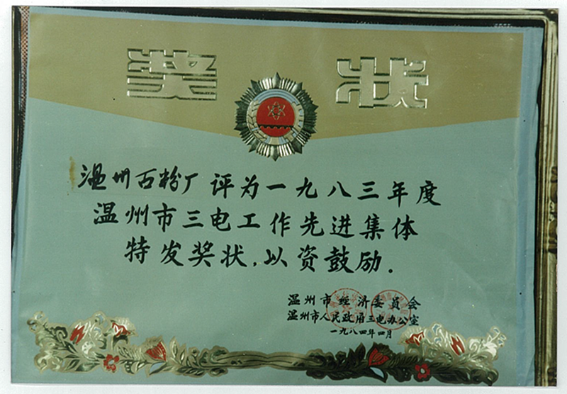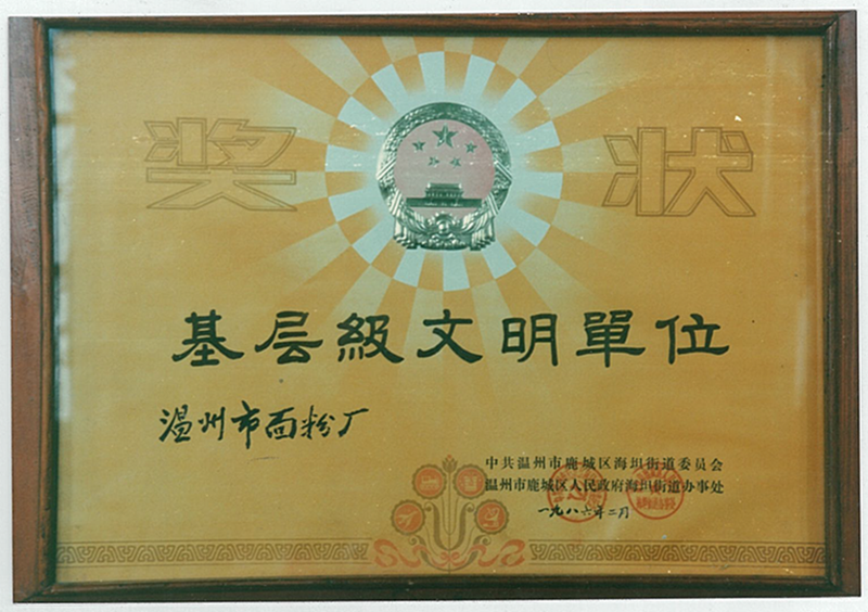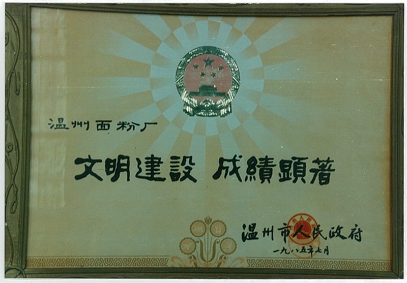 在生產(chǎn)經(jīng)營領(lǐng)域,面粉公司堅(jiān)持生產(chǎn)質(zhì)量優(yōu)先,堅(jiān)守糧食市民軍需供應(yīng)、豐富食品種類的主陣線,專注質(zhì)量管理、倉儲(chǔ)保管、節(jié)能發(fā)展、技術(shù)革新,因此先后榮獲浙江省先進(jìn)單位、先進(jìn)企業(yè),溫州市大慶大寨式企業(yè)、質(zhì)量先進(jìn)集體、技術(shù)改造先進(jìn)企業(yè)、三電節(jié)能先進(jìn)集體、倉儲(chǔ)工作先進(jìn)單位等。