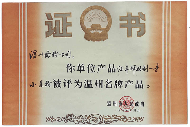 上個(gè)世紀(jì)公司主要經(jīng)營糧食生產(chǎn),在品牌產(chǎn)品領(lǐng)域開發(fā)“匯豐牌”面粉、“甌橋牌”面包、方便面等,斬獲消費(fèi)市場喜愛,其中“匯豐牌”特制一等粉獲得商務(wù)部優(yōu)質(zhì)產(chǎn)品認(rèn)證,榮膺溫州市最佳產(chǎn)品、溫州市系統(tǒng)品牌產(chǎn)品稱號(hào),其歐潮牌又獲得最佳溫州貨、最佳產(chǎn)品(兒童食品、面包類)榮譽(yù)稱號(hào)。